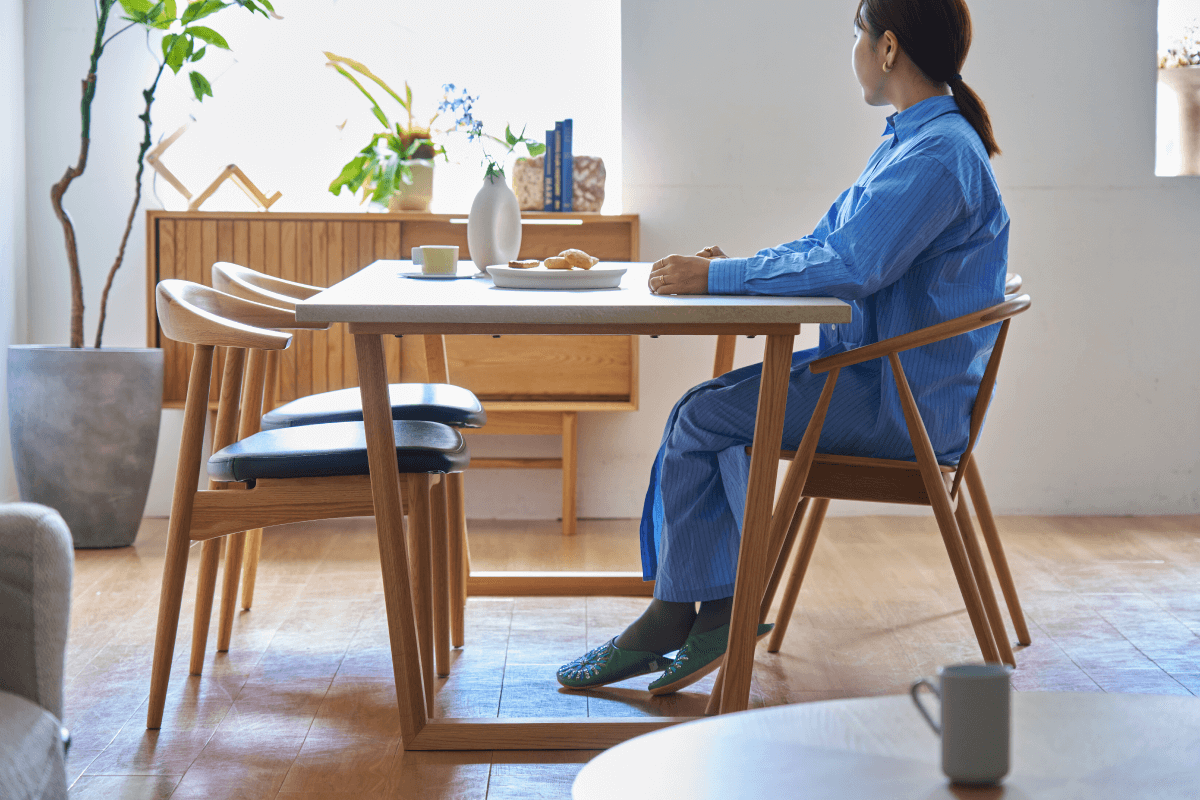 天然木の温もりと軽やかな佇まいが、ダイニングルームの空気を整えてくれるノース。立ち座りのしやすさや、掃除のしやすさまで何度も考え抜きました。毎日の食卓に心地よいリズムを生み出してくれる一押しアイテムです。