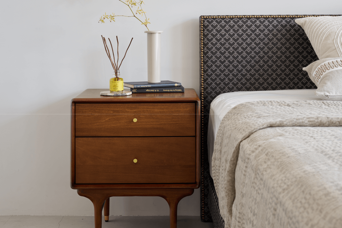 寂しくなりがちな「壁面」に表情を与えて、施工要らずのウォールユニット。たちまち高級ホテルのような雰囲気にしてくれるデザインと、側面にある収納スペースのバランスが魅力。天井高にあわせてサイズオーダーも。