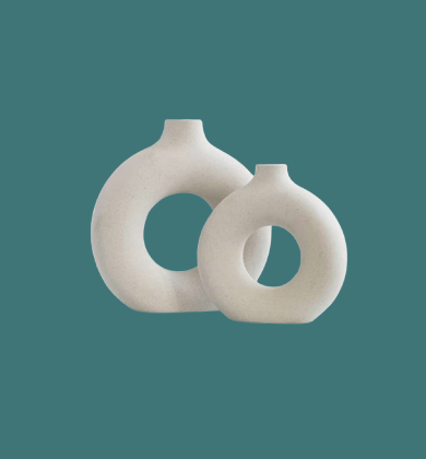 中央に空いた穴が印象的な、有機的フォルムのフラワーベース。ざらっとしたマットな質感とニュートラルカラーが花の色をやさしく受けとめます。いつもの部屋にそっと置くだけで、空間がぐっとこなれた印象に。